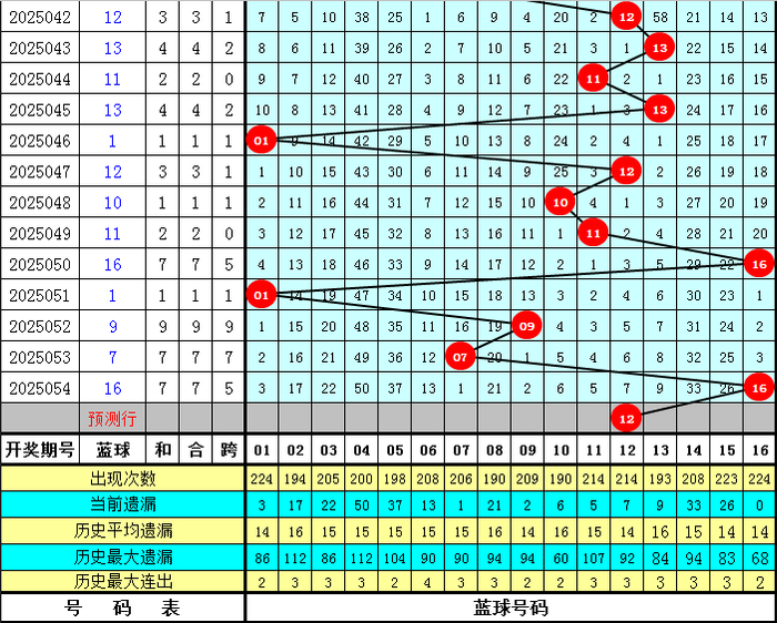 蓝球分析:蓝球上期开出大号16,最近10期蓝球号码大小比为7:3,大号蓝球表现活跃,本期继续关注大号蓝球,独蓝推荐12。
